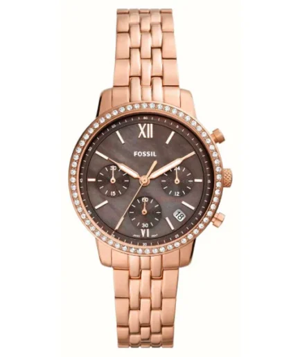 Fossil Neutra Rose Gold Stainless Steel Brown Dial Chronograph Quartz Watch for Ladies – ES5218