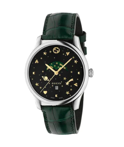 Upgrade your style with the **Gucci G-Timeless Green Leather Strap Black Dial Unisex Watch – YA126326**. This masterpiece by **Gucci G-Timeless Green Leather Strap Black Dial Unisex Watch** combines functionality with timeless elegance. Whether you’re looking for a formal accessory or a casual statement piece, the **YA126326** delivers on all fronts. Crafted with precision, it ensures durability and comfort. Shop 100% original **Gucci G-Timeless Green Leather Strap Black Dial Unisex Watch** watches online at the best prices in Pakistan. Comes with original packaging and warranty.